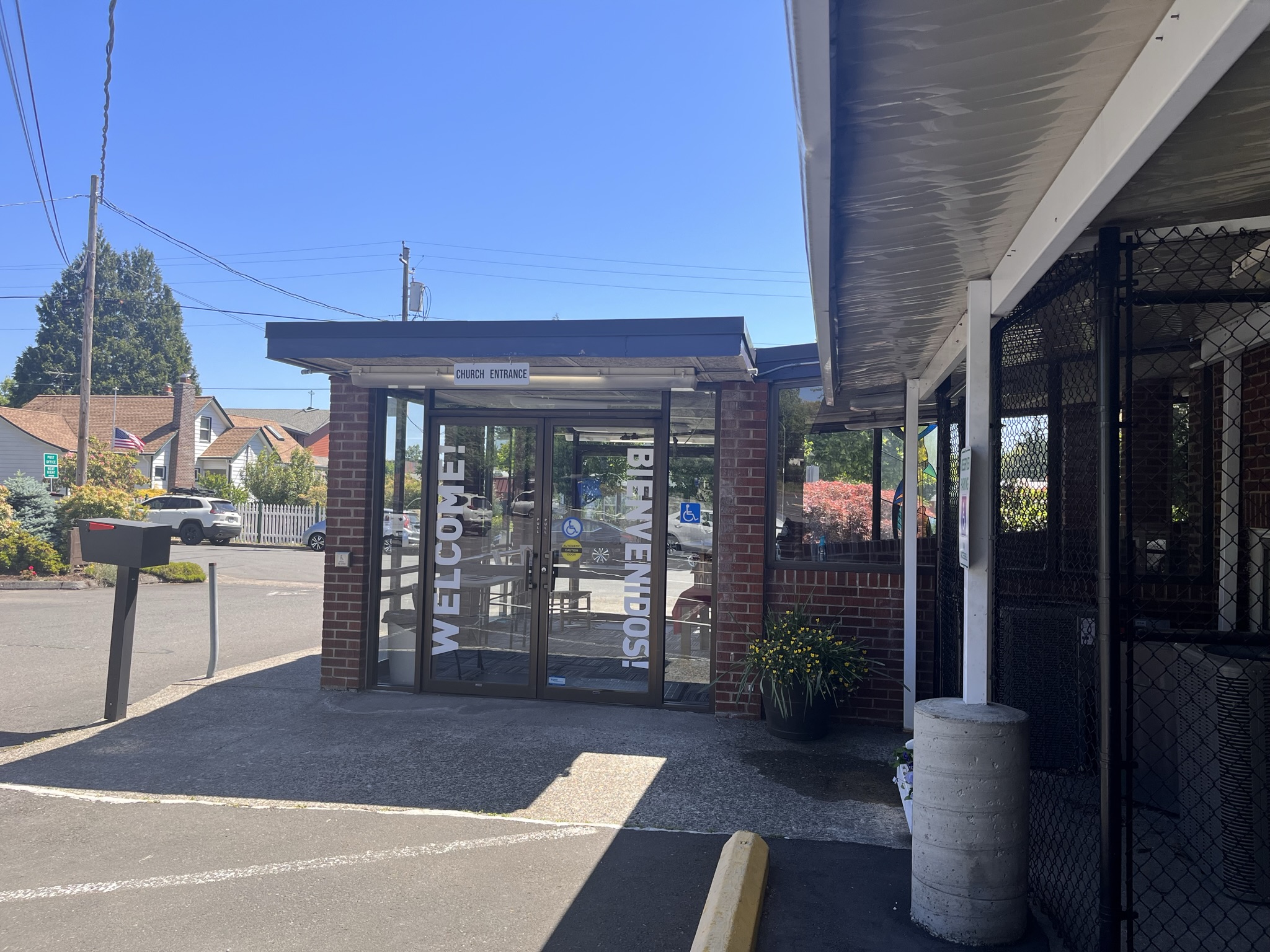 This is the door you will enter for worship services. Parking is plentiful around the church. Park near these doors for the shortest hike.
